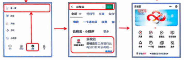 方式二:手機微信“發(fā)現(xiàn)”→“搜一搜”進入“云校云”小程序