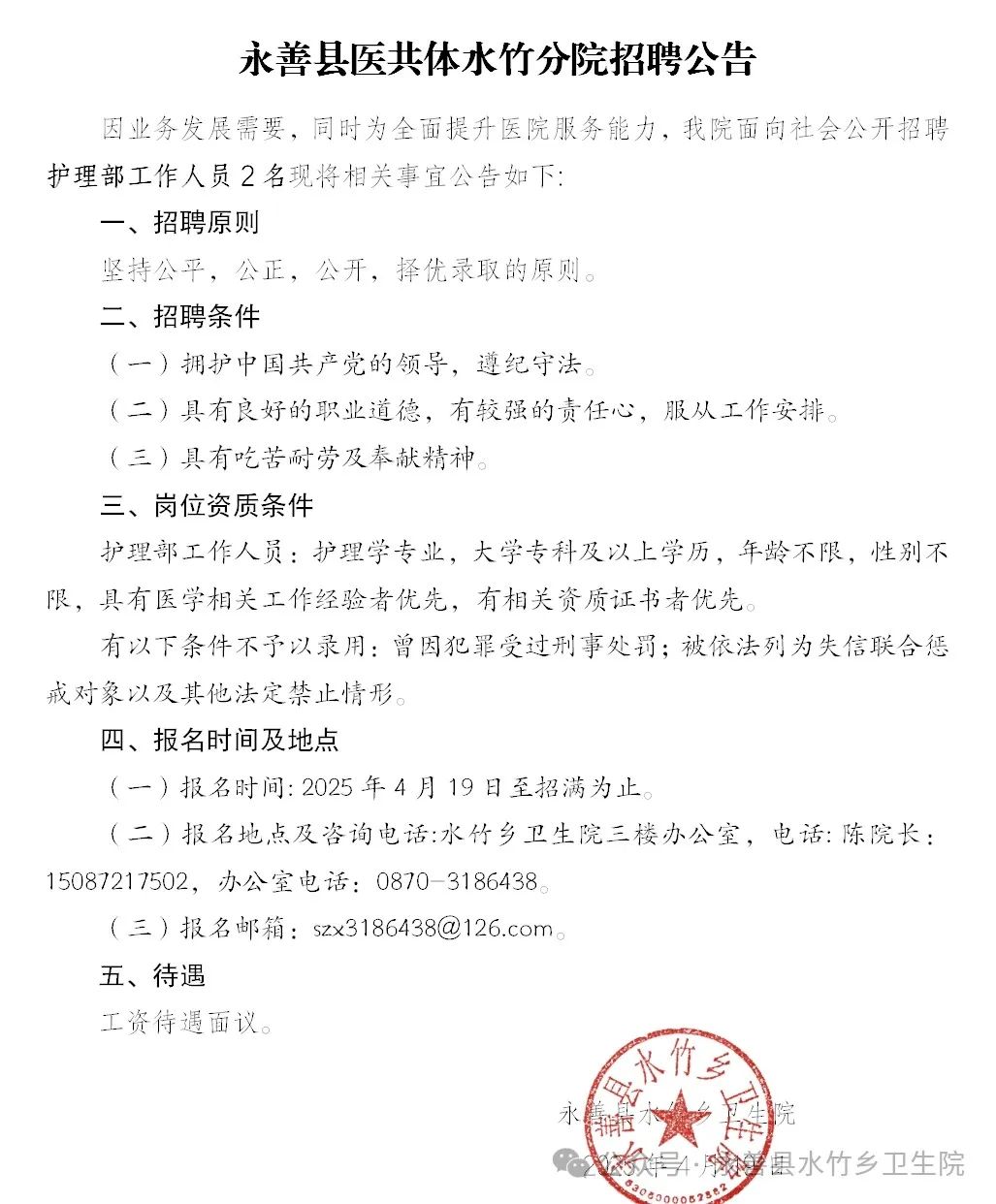 2025年昭通市永善縣醫(yī)共體水竹分院招聘公告
