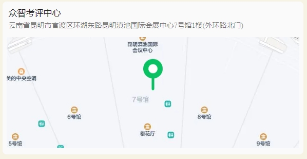 二、筆試地點(diǎn):云南眾智考評(píng)中心(昆明滇池國(guó)際會(huì)展中心7號(hào)館-外環(huán)路北門(mén)一層)。