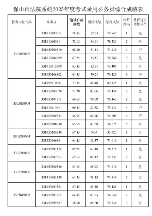 根據(jù)云南省2025年度考試錄用公務(wù)員工作安排,筆試、面試工作已經(jīng)結(jié)束,現(xiàn)將報考保山市法院系統(tǒng)公務(wù)員考生綜合成績及后續(xù)工作安排公告如下。