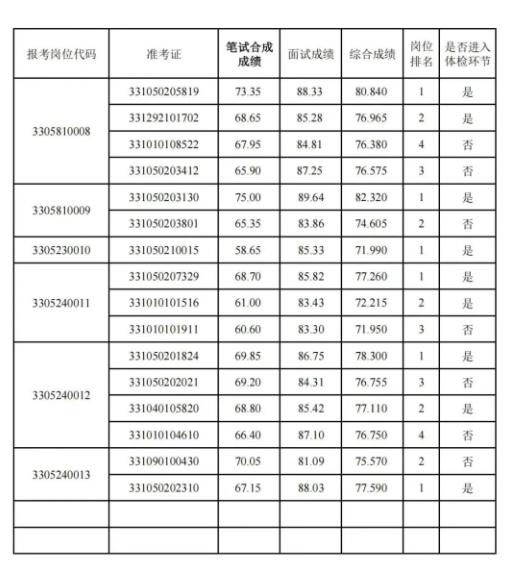 綜合成績按照筆試合成成績、面試合成成績各占50%的比例合成,筆試合成成績、面試合成成績四舍五入后均保留至小數(shù)點后2位,綜合成績四舍五入后保留至小數(shù)點后3位。具體綜合成績詳見附件。