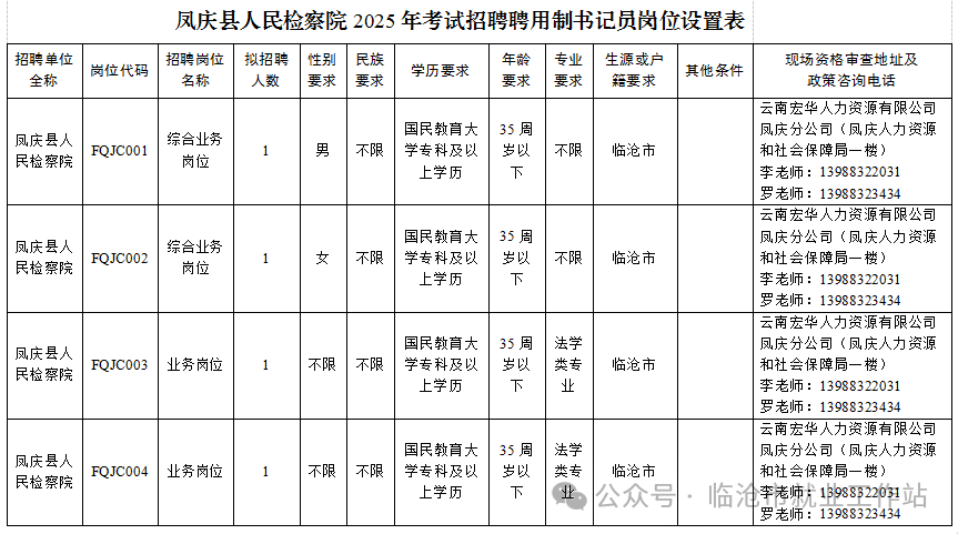 附件:《鳳慶縣人民檢察院2025年考試招聘聘用制書記員崗位設(shè)置表》