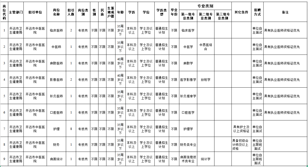 招聘崗位和條件詳見《開遠市中醫(yī)醫(yī)院2025年編外招聘崗位信息表》。