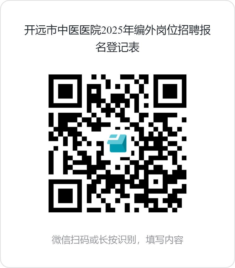 2.報名方式:本次招聘實行網(wǎng)絡(luò)報名:請于2025年5月18日前掃描下方二維碼填報《開遠市中醫(yī)醫(yī)院2025年編外崗位招聘報名表》。