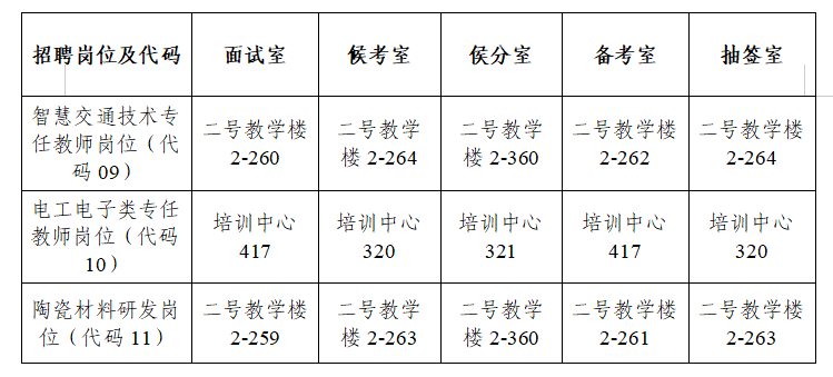 報考智慧交通技術專任教師崗位(代碼09),電工電子類專任教師崗位(代碼10),陶瓷材料研發(fā)崗位(代碼11)符合報考條件并通過資格復審的人員。