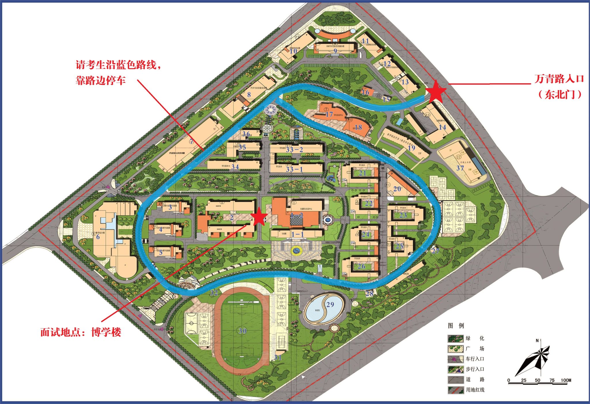 2.考生車輛須服從學(xué)校的管理,按學(xué)校保衛(wèi)人員的要求進行停放,詳見地圖。
