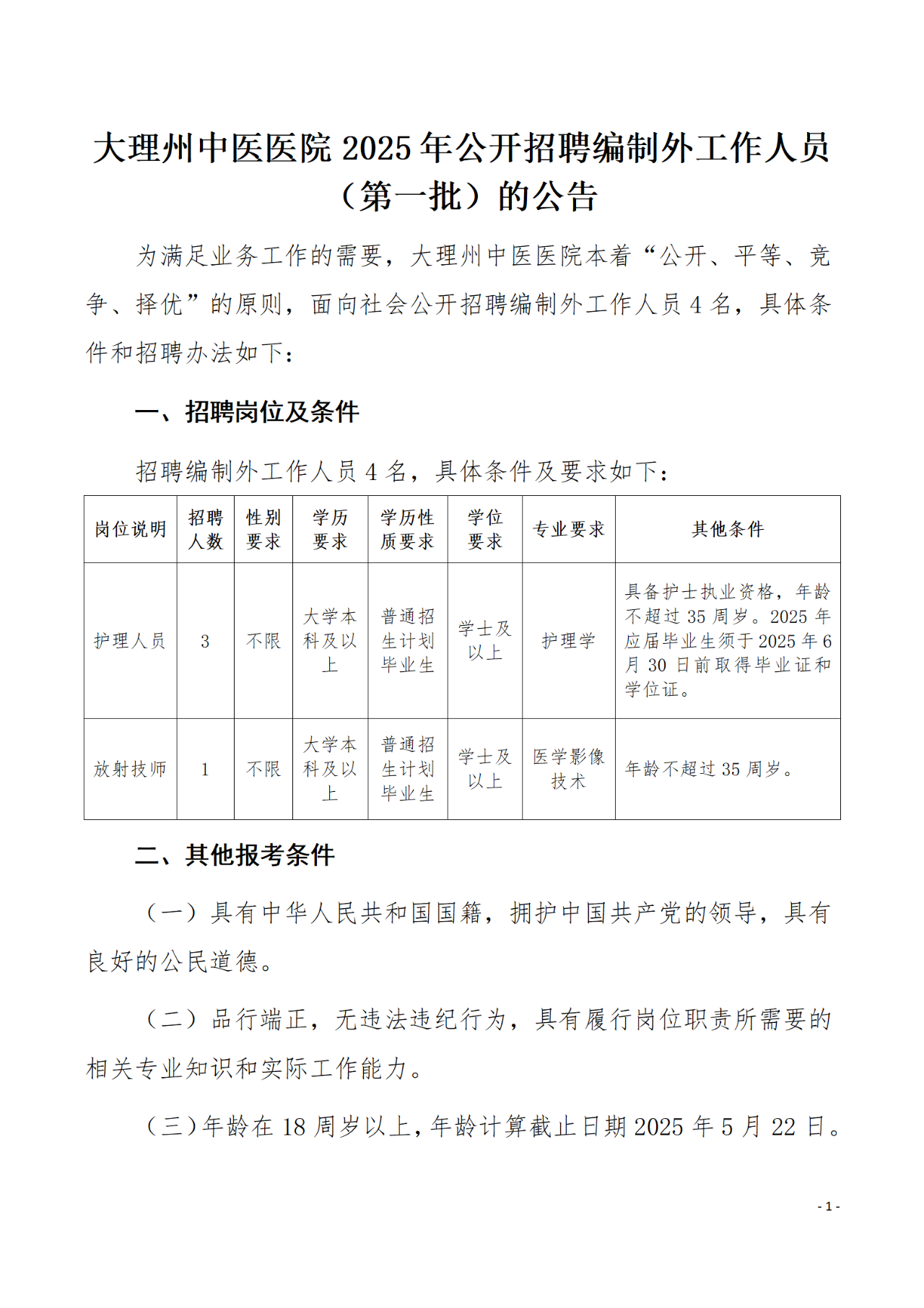 大理州中醫(yī)醫(yī)院2025年公開(kāi)招聘編制外工作人員(第一批)的公告