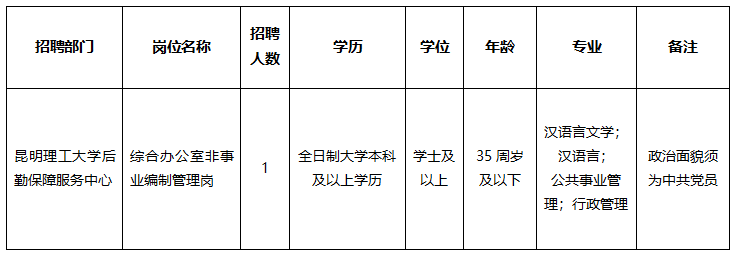 昆明理工大學(xué)后勤保障服務(wù)中心公開招聘非事業(yè)編制管理崗人員公告(1號(hào))