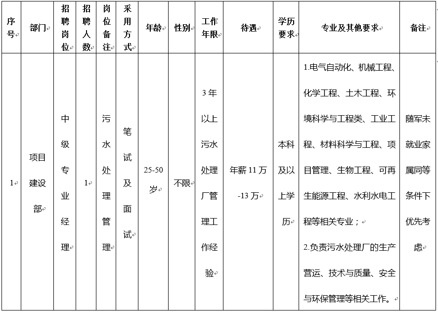 硯山金池實業(yè)有限責任公司為硯山七鄉(xiāng)產業(yè)投資集團有限公司的國有獨資公司,公司成立于2018年7月6日,注冊資本金5000萬元。業(yè)務范圍涵蓋:輸電、供電、受電電力設施的安裝、維修和試驗;發(fā)電業(yè)務、輸電業(yè)務、供(配)電業(yè)務;供電業(yè)務;燃氣經營;生物質燃氣生產和供應;燃氣汽車加氣經營;城市建筑垃圾處置(清運);城市生活垃圾經營性服務;污水處理及其再生利用等。為滿足公司運營需求,特向社會公開招聘1名污水處理廠副廠長。