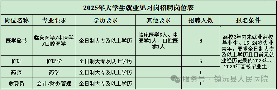鎮(zhèn)沅縣人民醫(yī)院2025年第一批見習崗位人員招錄公告