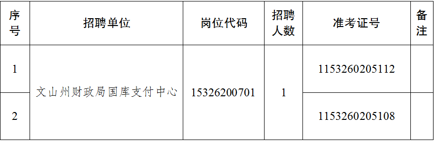 附件:文山州財(cái)政局國(guó)庫(kù)支付中心公開(kāi)招聘崗位進(jìn)入面試人員名單
