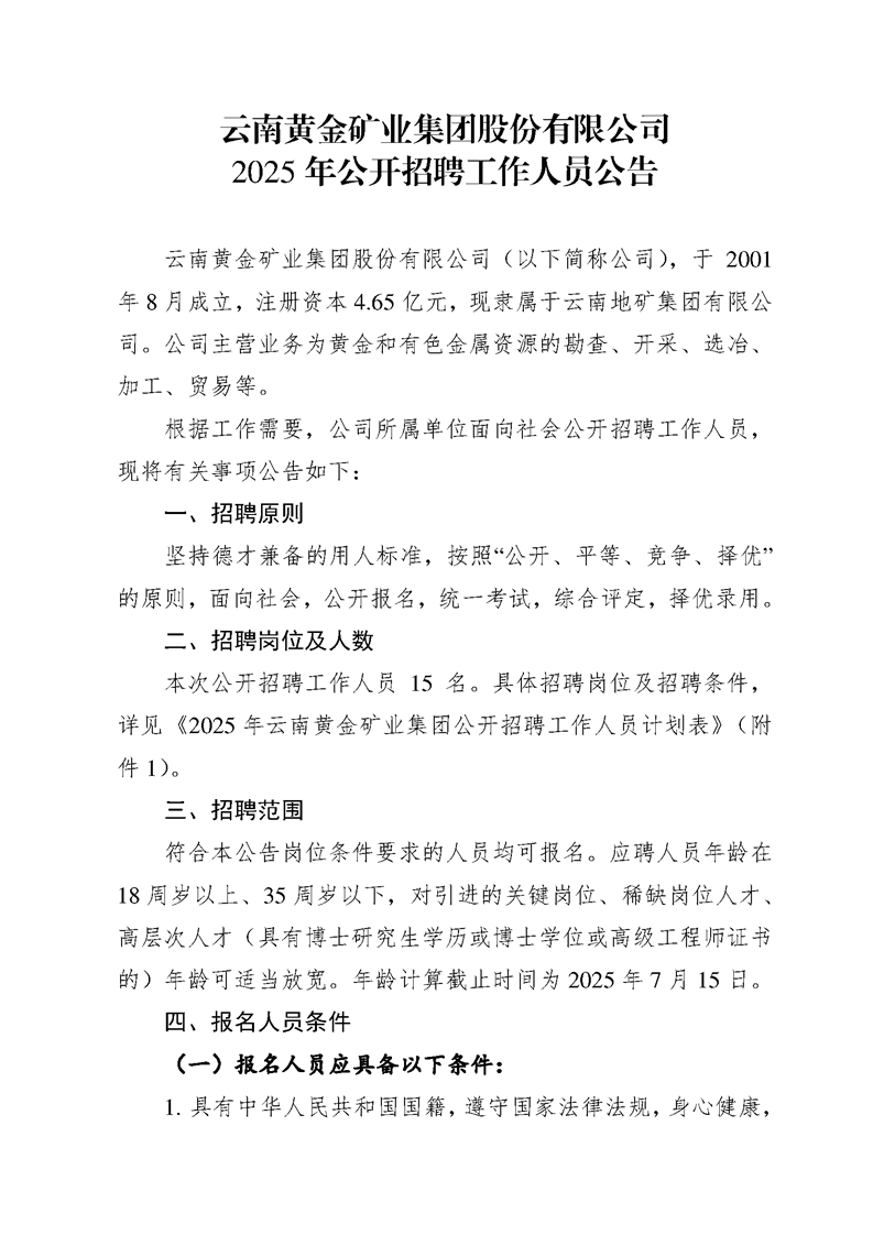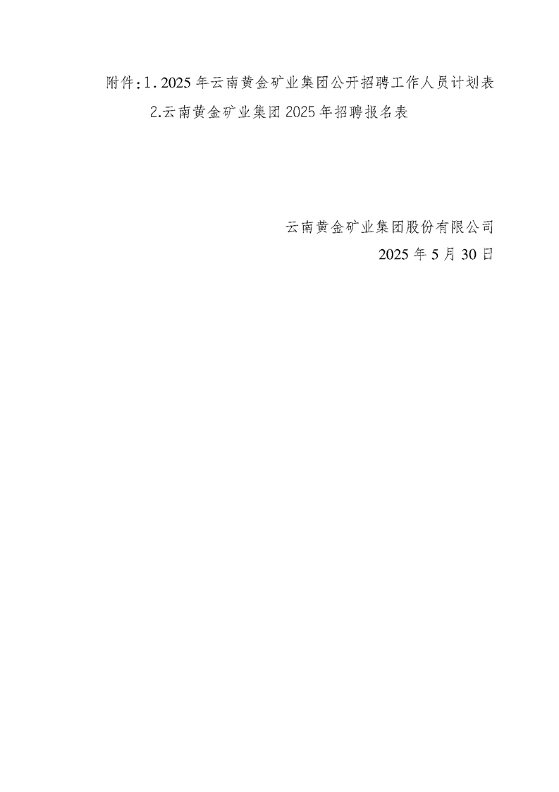 附件1 2025年云南黃金礦業(yè)集團公開招聘工作人員計劃表.xlsx