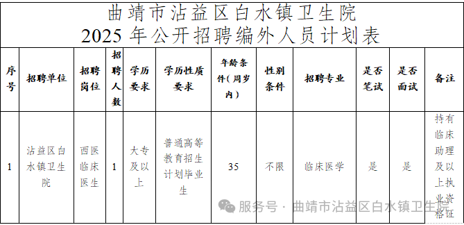 曲靖市沾益區(qū)白水鎮(zhèn)衛(wèi)生院公開招聘編外人員公告