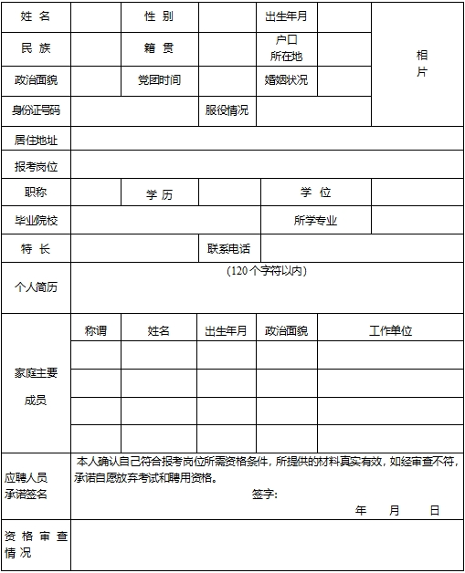 附件:富民縣消防救援大隊招聘專職消防員報名申請表
