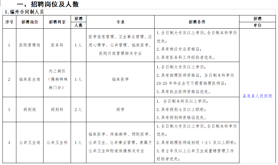 孟連縣人民醫(yī)院微信公眾號公開發(fā)布招聘公告