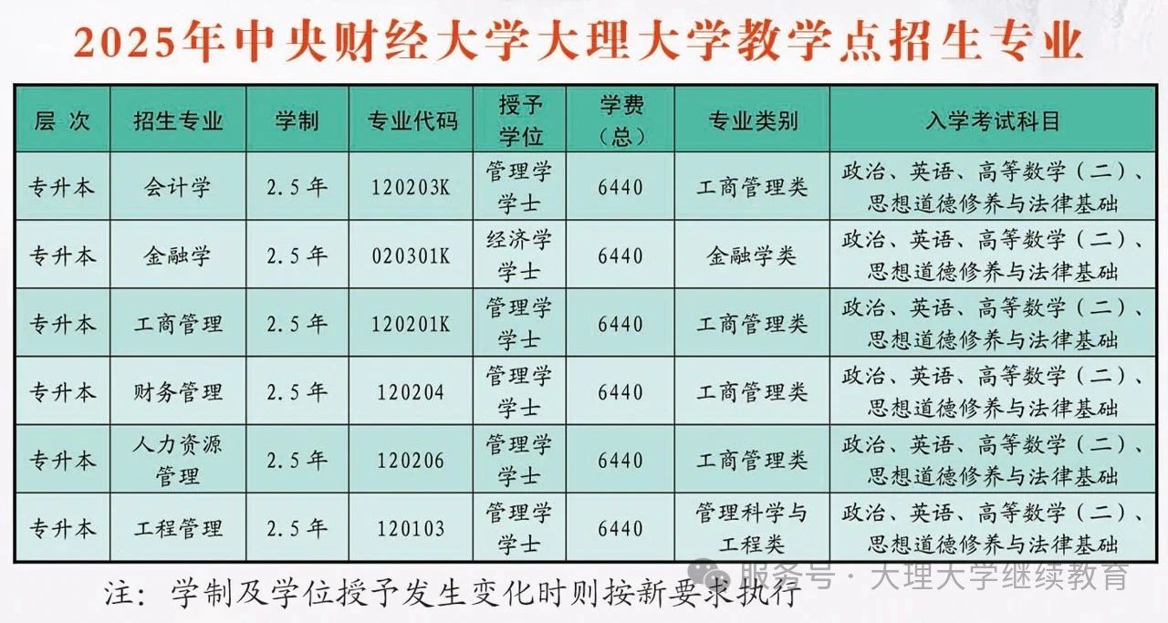 大理大學(xué)2025年高等學(xué)歷繼續(xù)教育(成人高等教育)招生簡章