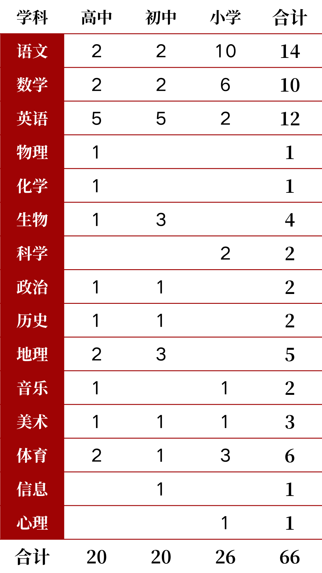 (15個學(xué)科,66個崗位)