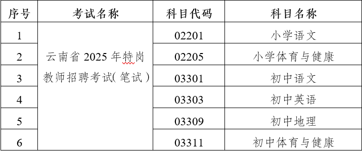 云南省2025年特崗教師招聘考試(筆試)將于7月12日上午舉行,以下6門課程使用專用答題卡,其余均使用通用答題卡。