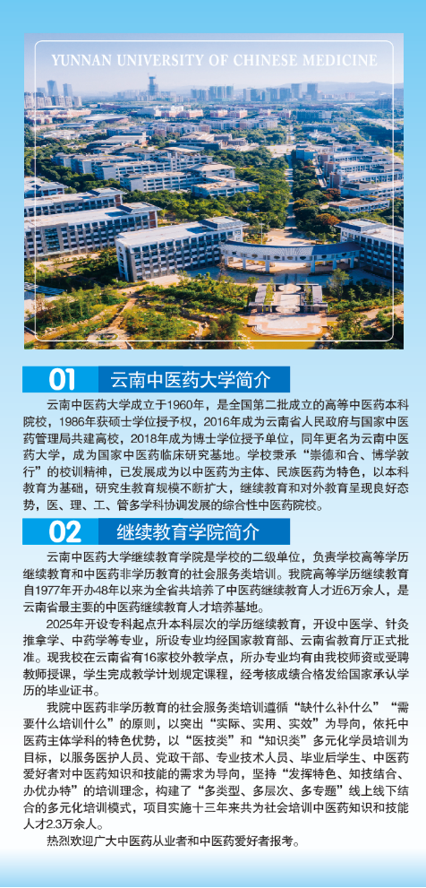 云南中醫(yī)藥大學(xué)2025高等學(xué)歷繼續(xù)教育招生簡章