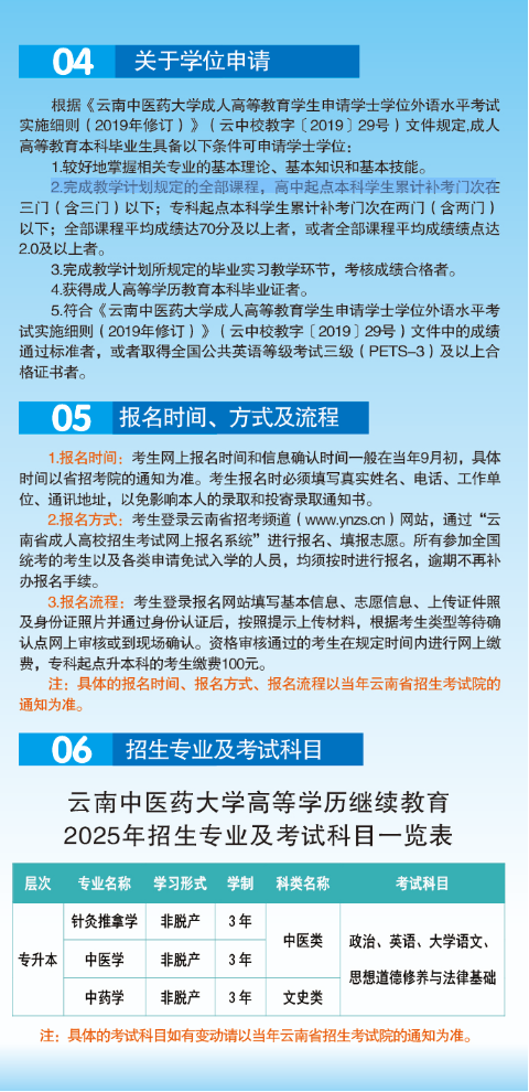 2025年云南中醫(yī)藥大學(xué)高等學(xué)歷繼續(xù)教育招生簡章