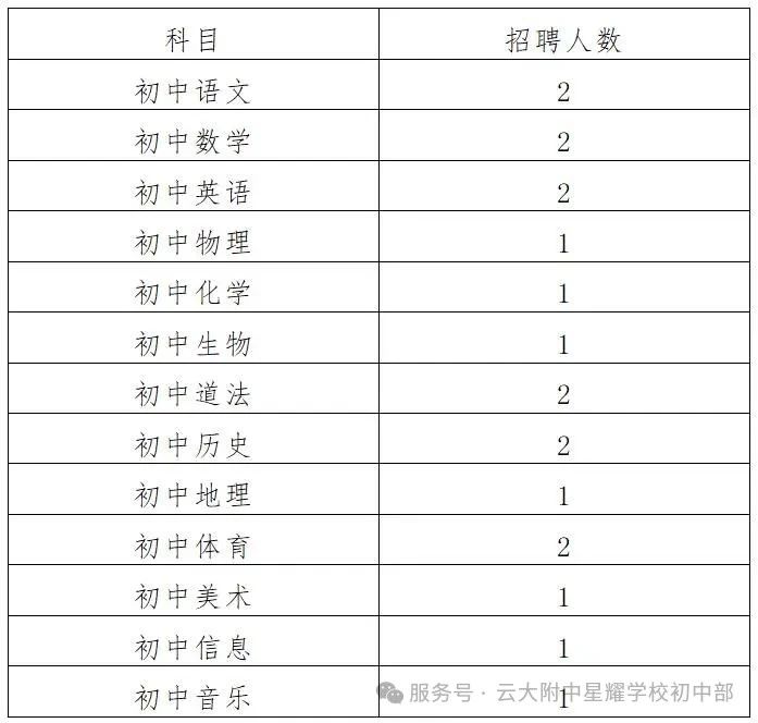 昆明市官渡區(qū)云大附中星耀學(xué)校2025年公開招聘教師公告