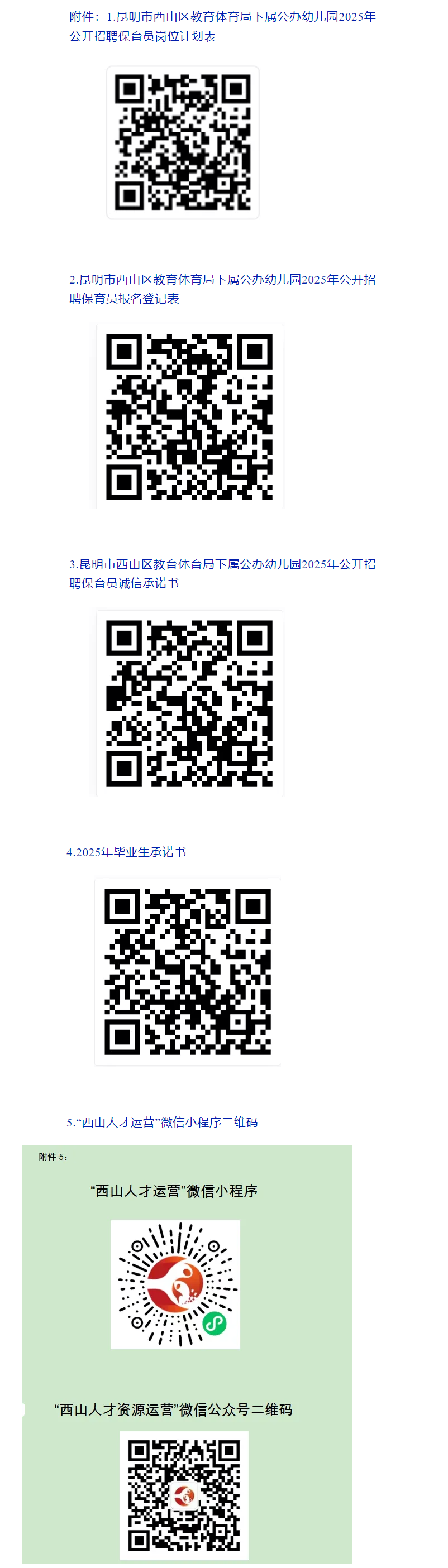 (1)《昆明市西山區(qū)教育體育局下屬公辦幼兒園2025年公開招聘保育員報名登記表》(詳見附件2,請?zhí)崆白孕邢螺d填寫,A4紙打?。?。