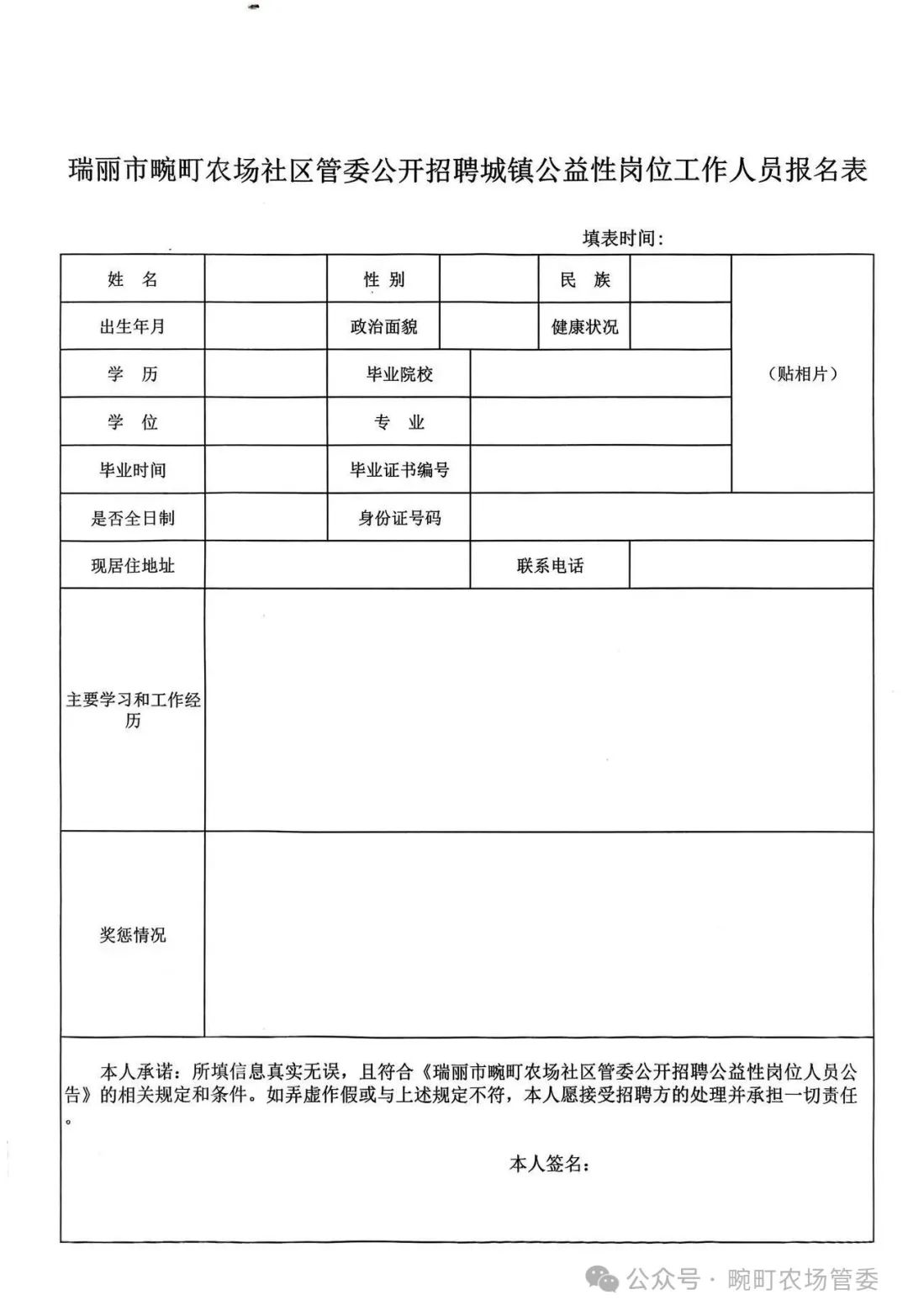 附件:《瑞麗市畹町農場社區(qū)管委招聘公益性崗位工作人員報名表》