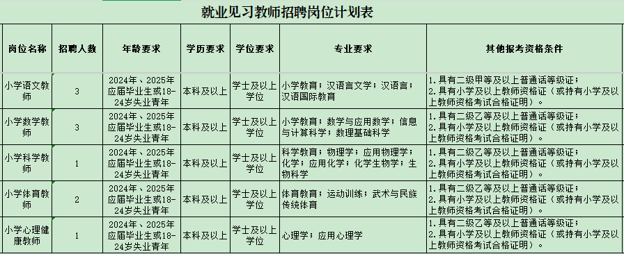 就業(yè)見(jiàn)習(xí)教師招聘條件如下