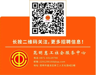 本公告最終解釋權歸昆明惠工社會服務中心所有,后續(xù)招聘相關信息,敬請關注“昆明惠工中心”微信公眾號。