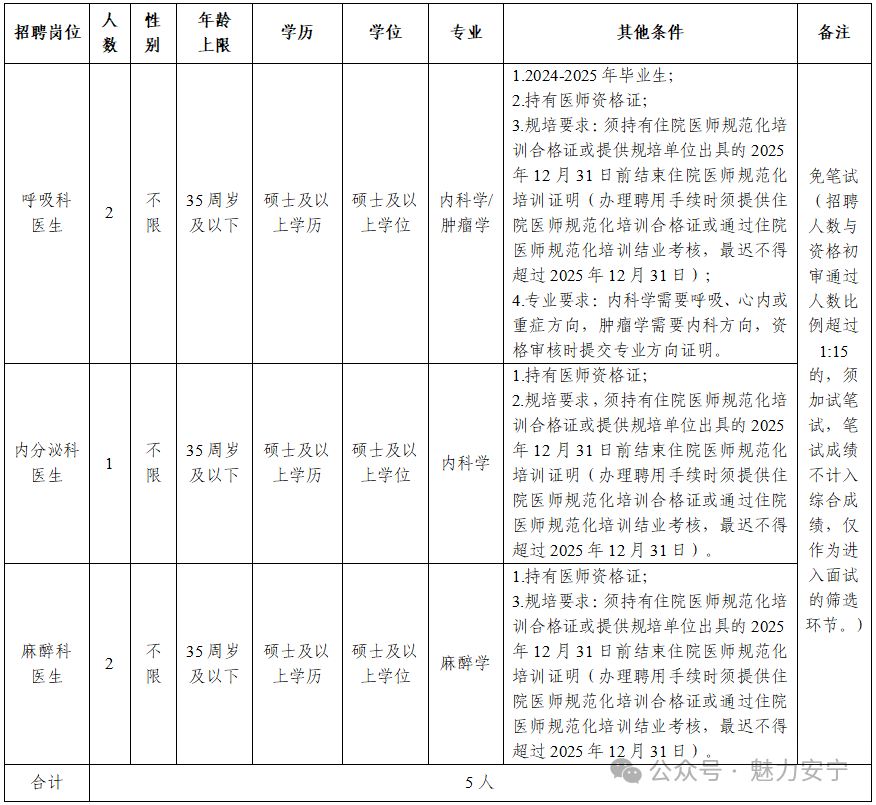 安寧市第一人民醫(yī)院是安寧市衛(wèi)健局下屬差額撥款事業(yè)單位。現(xiàn)因工作需要,本著公開(kāi)、公正、擇優(yōu)原則,面向社會(huì)招聘5名編外聘用人員,本次為非事業(yè)編制招聘,招聘事宜如下: