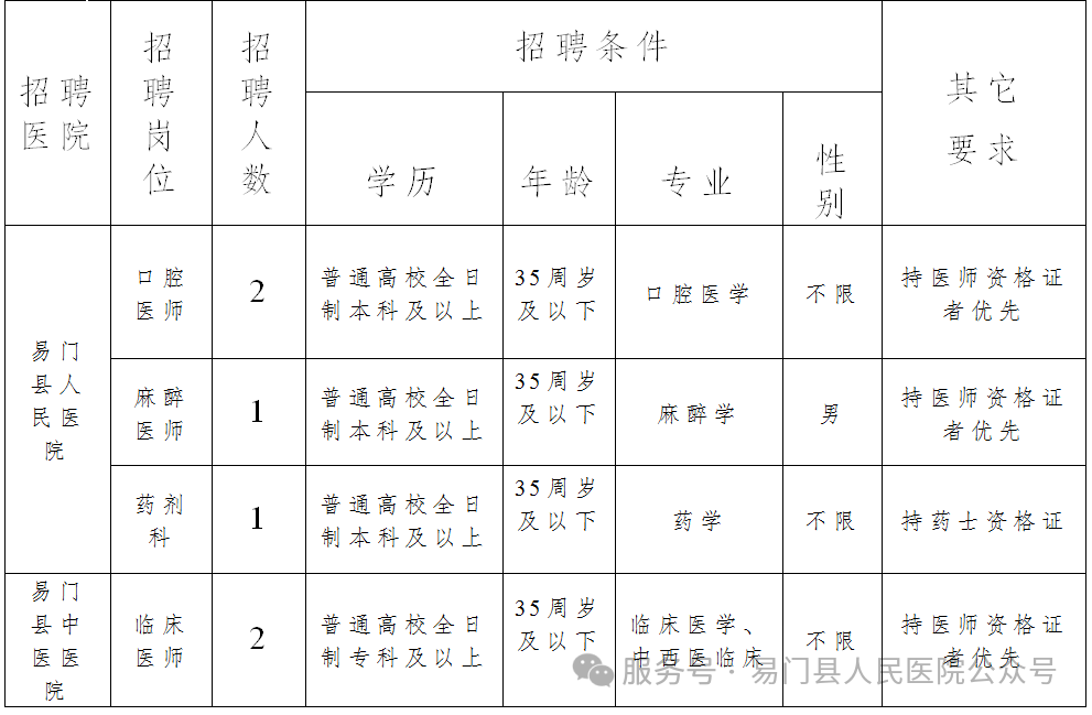易門縣緊密型醫(yī)共體總醫(yī)院2025年8月公開招聘編制外工作人員公告