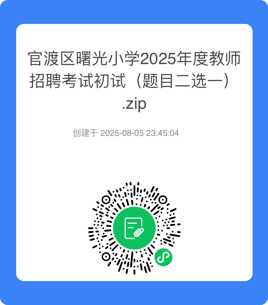 掃描下方二維碼下載填寫《2025 年昆明市官渡區(qū)曙光小學(xué)招聘報(bào)名登記表》;