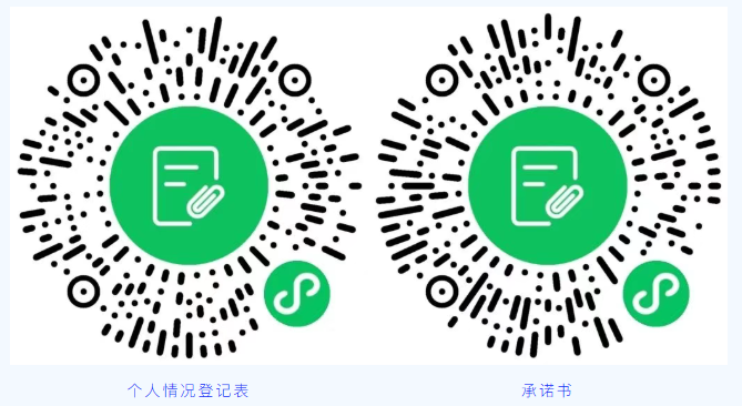 注:分別掃描下方兩個二維碼下載“個人情況登記表”及“承諾書”并填寫。