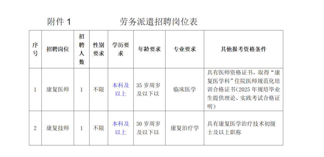 本公司公開(kāi)招聘醫(yī)療類(lèi)勞務(wù)派遣工作人員,崗位要求詳見(jiàn)《勞務(wù)派遣招聘崗位表》。