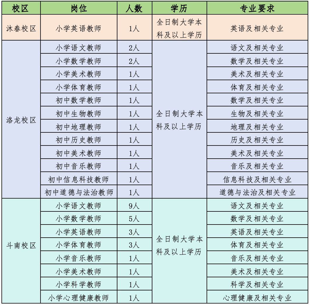 經(jīng)教育主管部門(mén)同意,根據(jù)學(xué)校2025年建設(shè)發(fā)展需要,現(xiàn)面向社會(huì)公開(kāi)招聘聘用制教師39人,其中沐春校區(qū)1人,洛龍校區(qū)14人,斗南校區(qū)24人。
