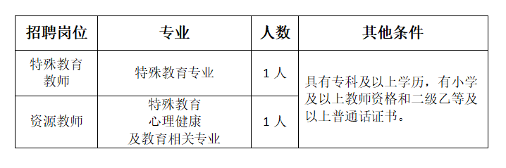 5.有特殊教育專業(yè)背景;有從事小學(xué)相關(guān)學(xué)科教學(xué)、班主任工作經(jīng)歷者優(yōu)先聘用。