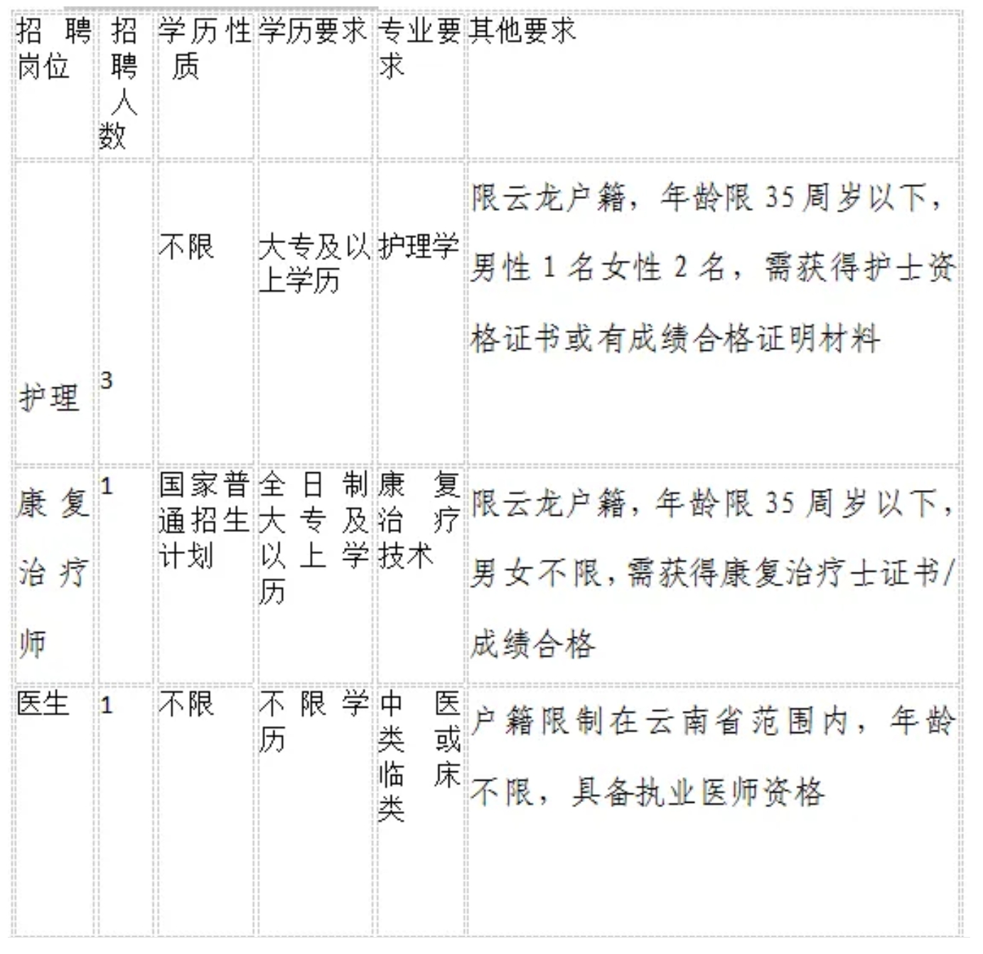 云龍縣縣域醫(yī)共體中醫(yī)醫(yī)院是一所集醫(yī)療、教學(xué)、科研、預(yù)防保健、康復(fù)于一體的二級甲等中醫(yī)醫(yī)院。為加強(qiáng)醫(yī)院人才隊(duì)伍建設(shè),根據(jù)醫(yī)院工作需要,經(jīng)研究決定,擬面向社會公開招聘編制外人員5名,現(xiàn)將有關(guān)招聘事項(xiàng)公告如下: