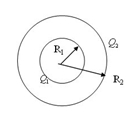 2.在半徑為R1和R2的兩個同心球面上,均勻分布著電荷Q1和Q2,如圖所示。求:r<R1;R1<r<R2;r>R2三個區(qū)域內(nèi)的電勢分布。