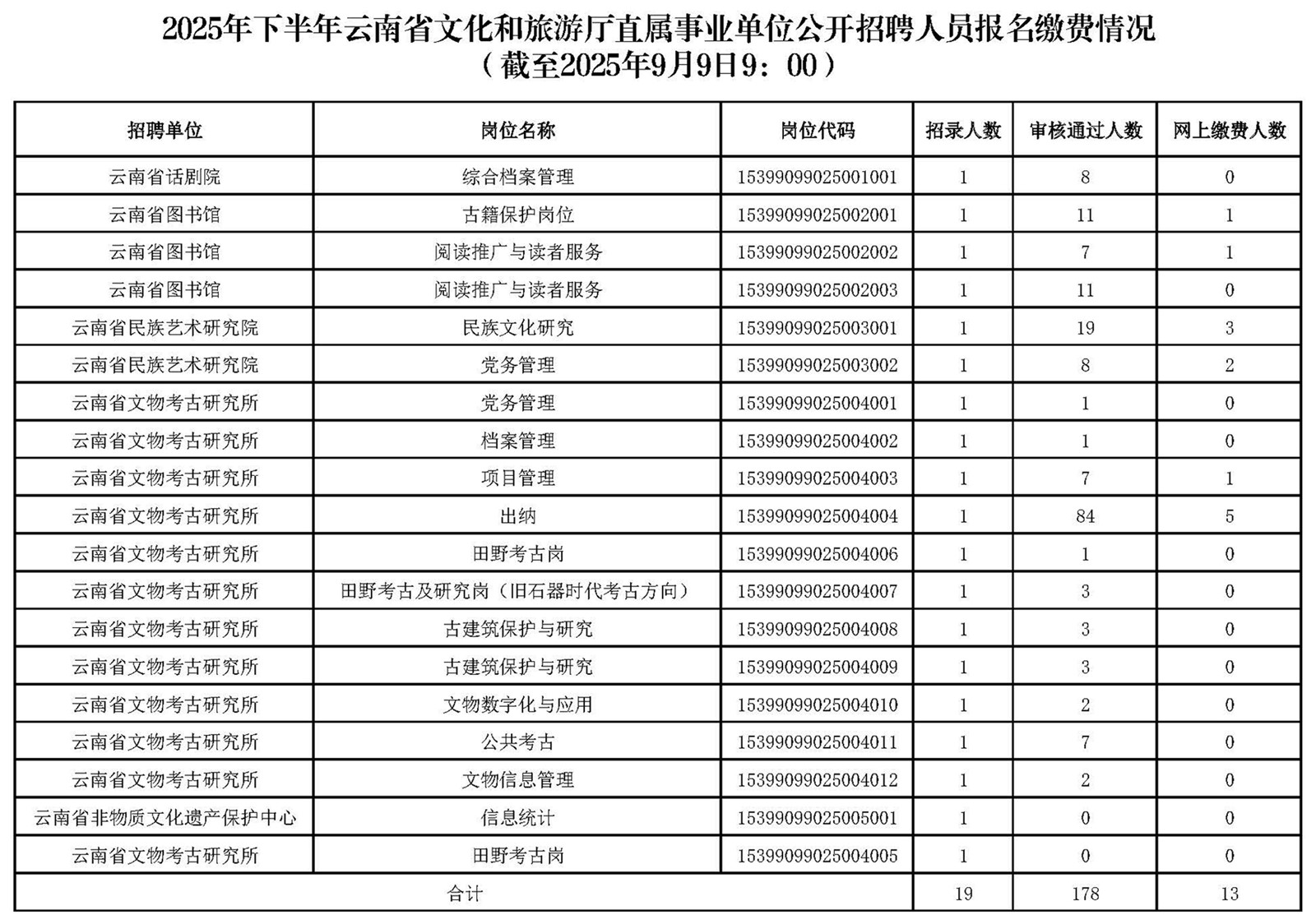 2025年下半年云南省文化和旅游廳直屬事業(yè)單位公開招聘人員報名繳費情況