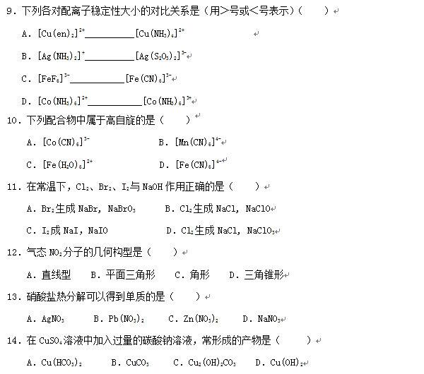 (3)掌握常見元素鹵素、氧、硫、氮、磷、碳、硅、硼、鋁、銅、銀、鋅、汞、鉻、錳、鐵、鈷、鎳單質(zhì)和重要化合物的結(jié)構(gòu)和性質(zhì);
