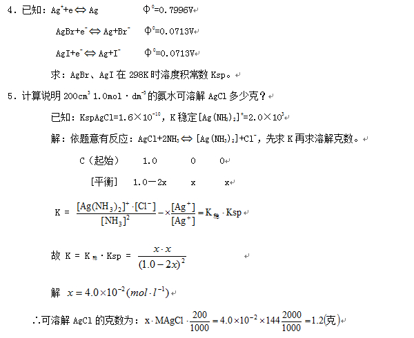 (3)用φ0計(jì)算并判斷氧化還原反應(yīng)方向和程度(公式 = );