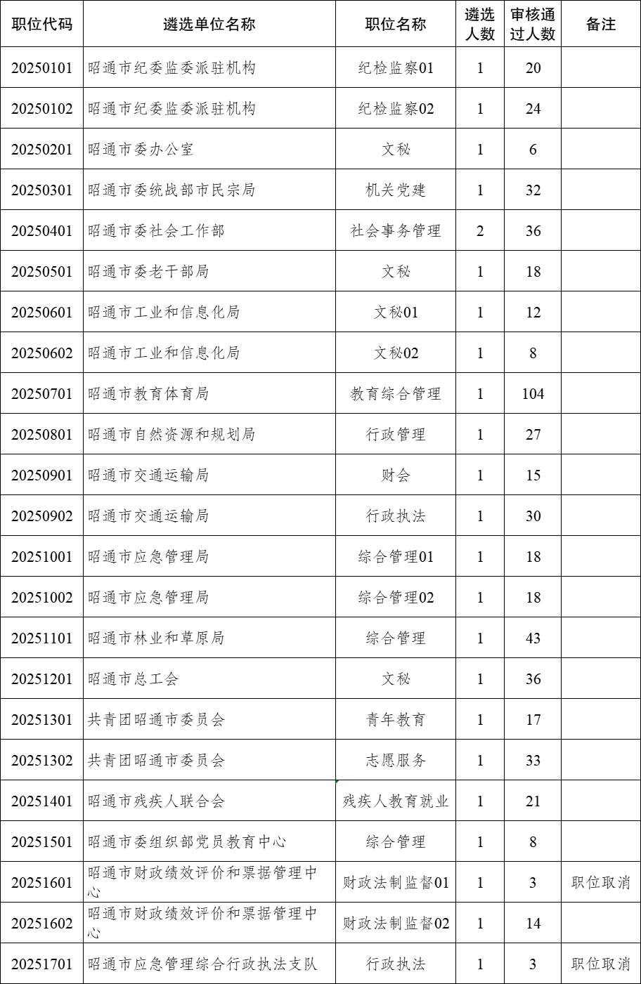 統(tǒng)一公開遴選公務(wù)員報(bào)名情況公示