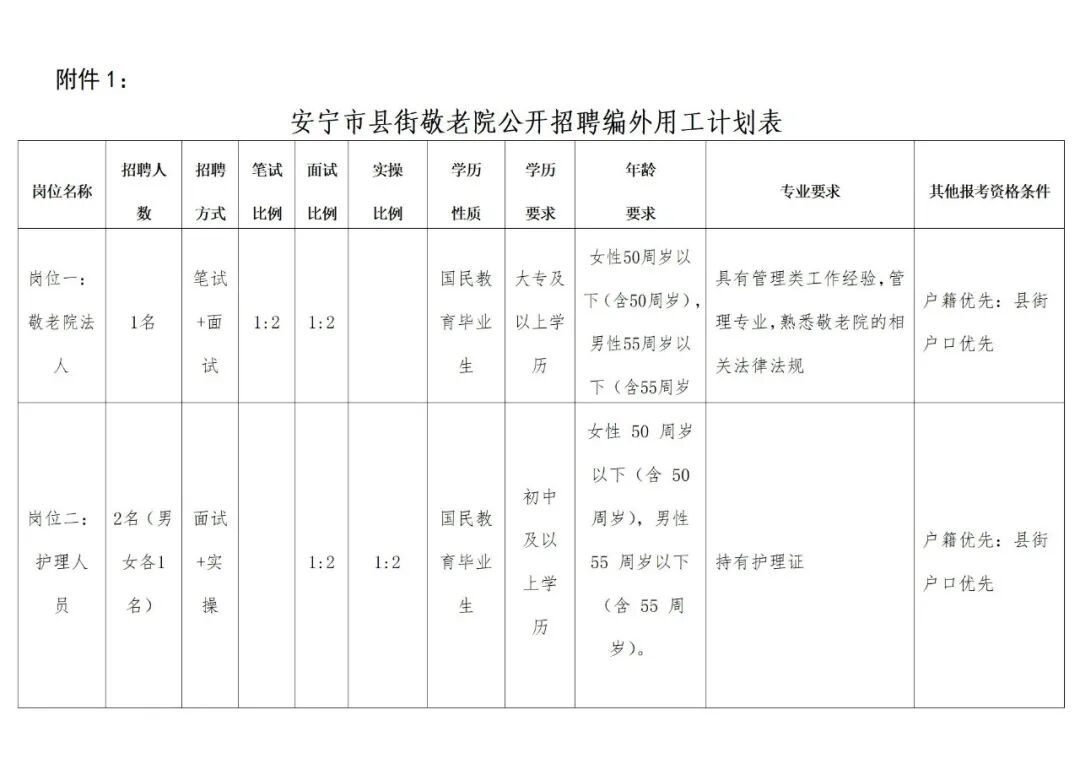 因工作需要,安寧市縣街敬老院現(xiàn)面向社會(huì)公開招聘法人1名、護(hù)理人員2名?,F(xiàn)將有關(guān)事項(xiàng)通告如下: