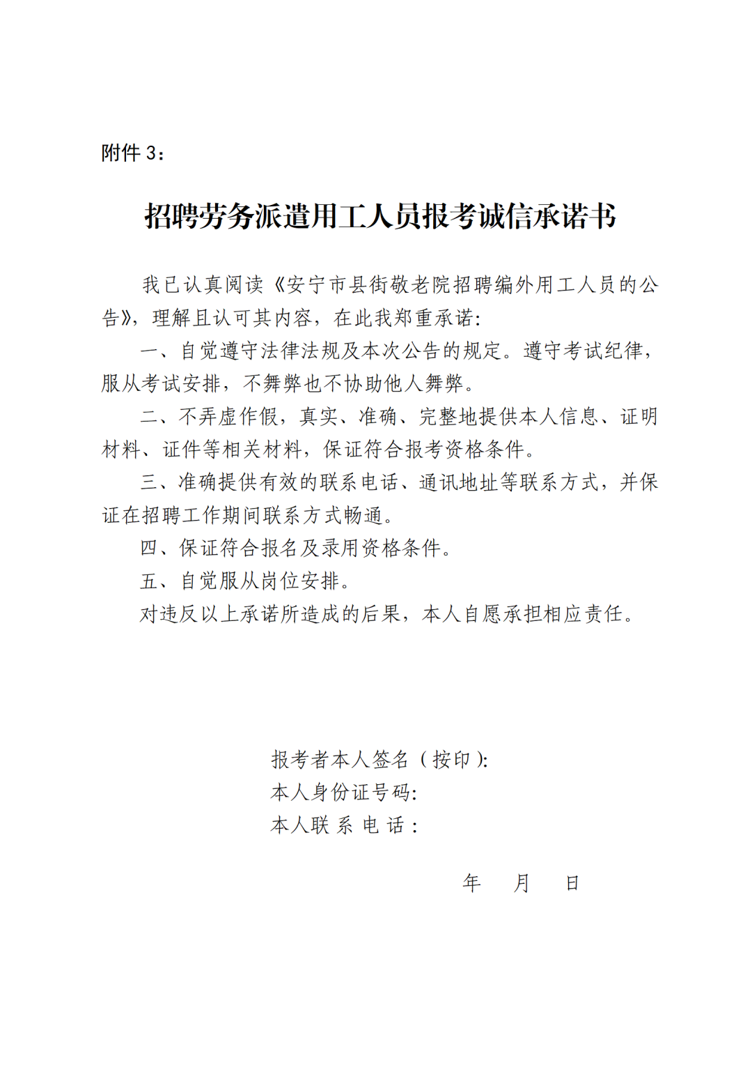 3.招聘勞務(wù)派遣用工人員報(bào)考誠信承諾書