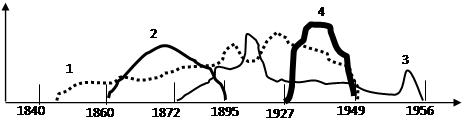 34.下圖是中國(guó)近現(xiàn)代幾種主要經(jīng)濟(jì)形式的發(fā)展走勢(shì)示意圖。影響其中3(曲線(xiàn))所代表的經(jīng)濟(jì)形式迎來(lái)發(fā)展最高峰(圖中字母 a處)的原因表述正確的是