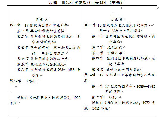 問(wèn)題:比較兩份目錄并結(jié)合所學(xué)知識(shí),指出其中一處不同,并分析出現(xiàn)這種不同的原因。(所指出的不同之處明確清楚;原因可以一個(gè)或多個(gè)角度進(jìn)行分析,觀(guān)點(diǎn)明確,合理充分)