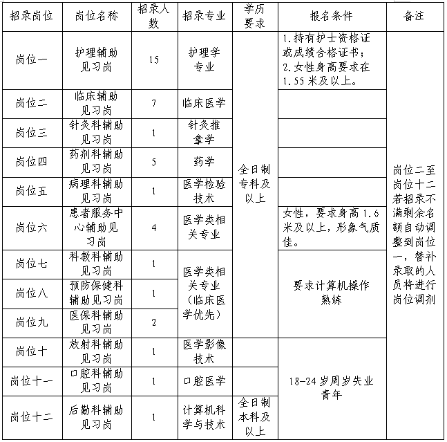 為響應(yīng)黨和國(guó)家的號(hào)召,加強(qiáng)對(duì)高校畢業(yè)生的培養(yǎng),盡快提高其工作能力,根據(jù)醫(yī)院工作需要,現(xiàn)擬面向社會(huì)公開(kāi)招錄見(jiàn)習(xí)崗人員40名,現(xiàn)將有關(guān)事宜公告如下: