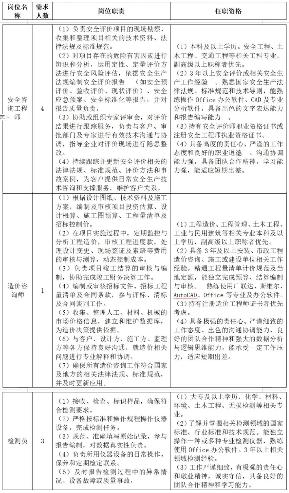現(xiàn)因公司業(yè)務(wù)發(fā)展需要,現(xiàn)面向集團(tuán)內(nèi)外部單位開(kāi)展招聘工作,招聘崗位及流程如下: