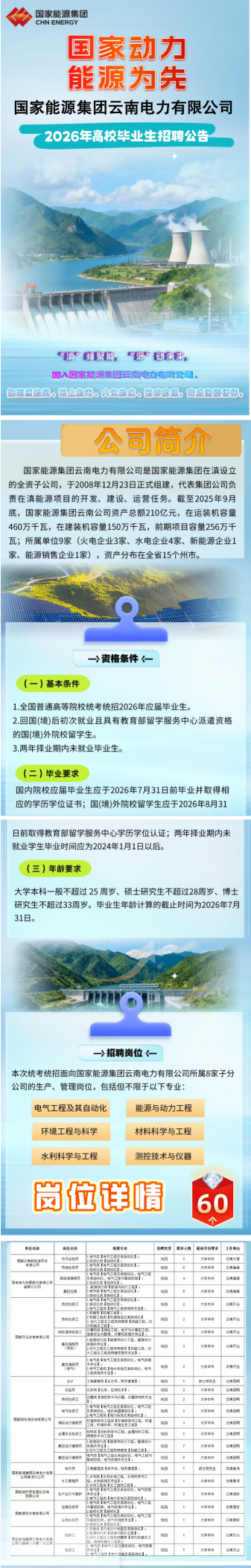 2026年國家能源集團(tuán)云南電力有限公司校園招聘公告