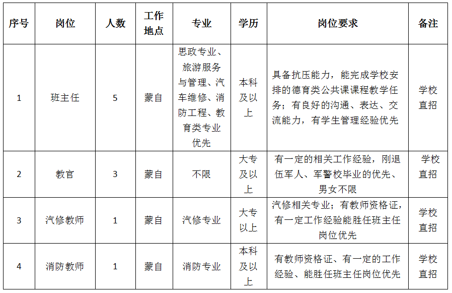 二、招聘崗位(班主任;軍管教官;專業(yè)課教師;招生老師崗位招聘)